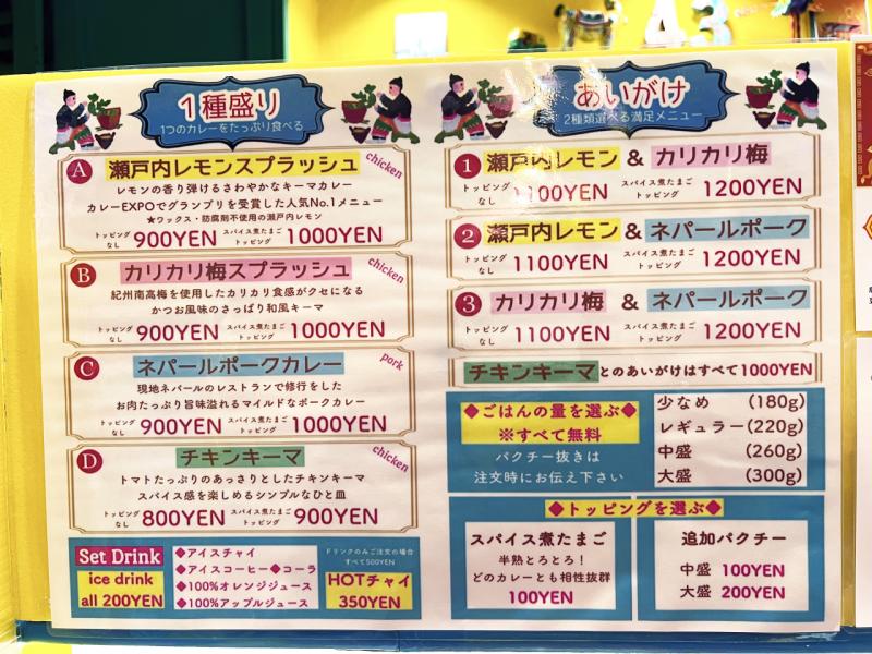 個性的なカレーメニュー