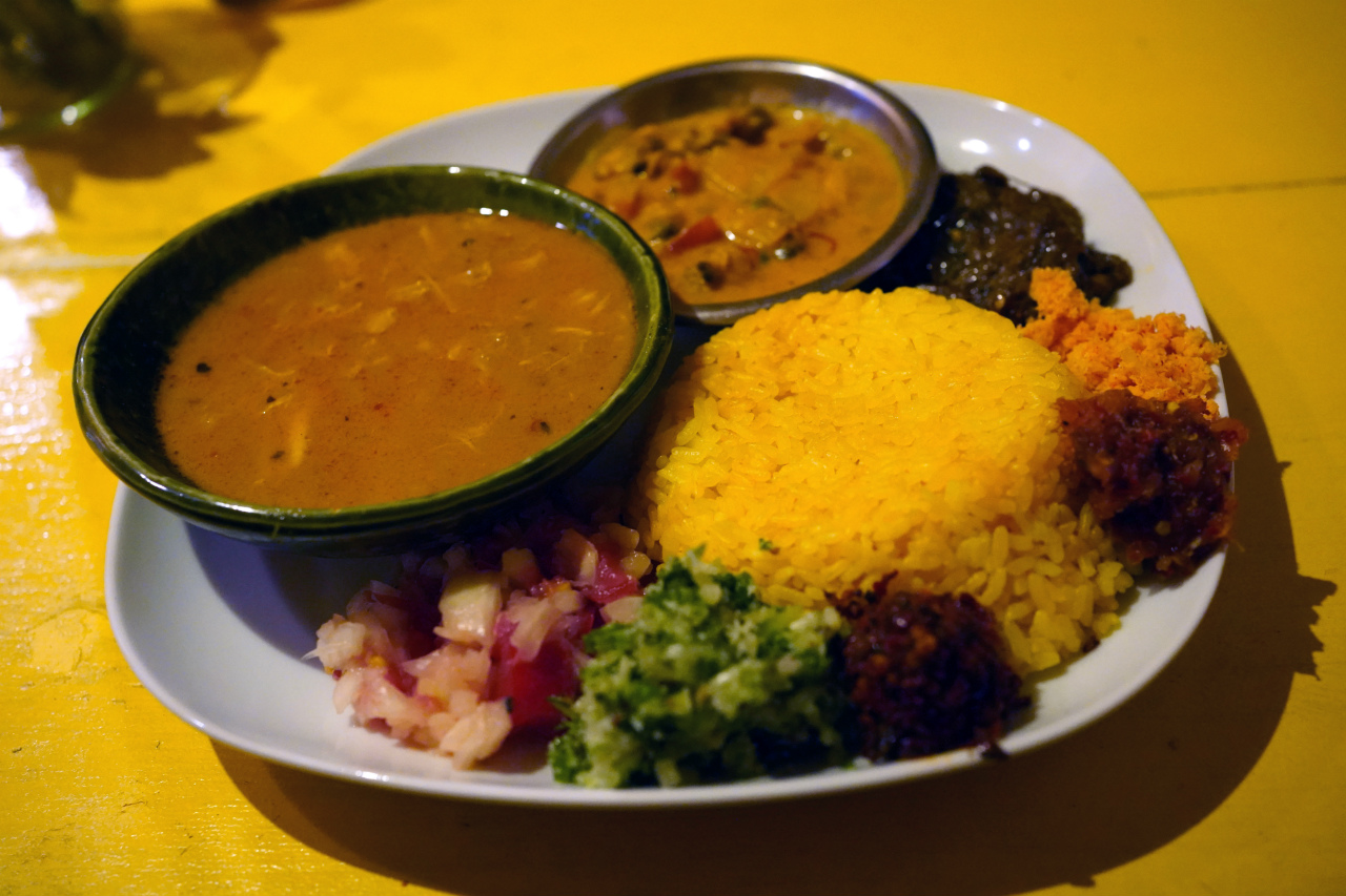 南船場の「デッカオ」で本格スリランカカレー!カレーとご飯、副菜を混ぜていただきます。